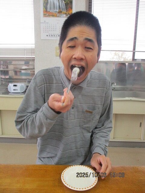 一口で終わるサイズだったので、あっという間にお口に入ってしまい