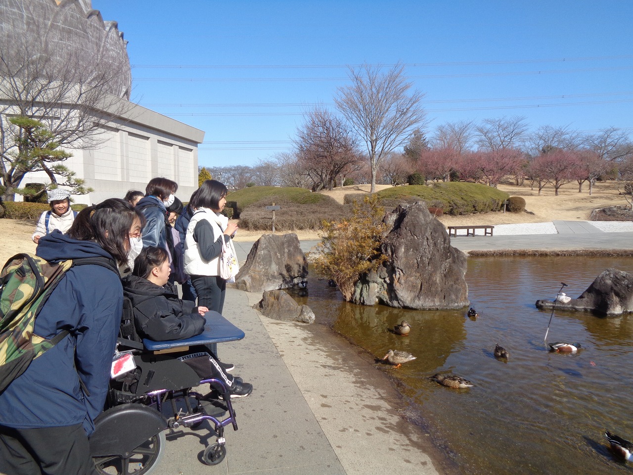 さらに歩いて行くと池を発見😲池にはカモがいっぱい、鯉も泳いでいました。